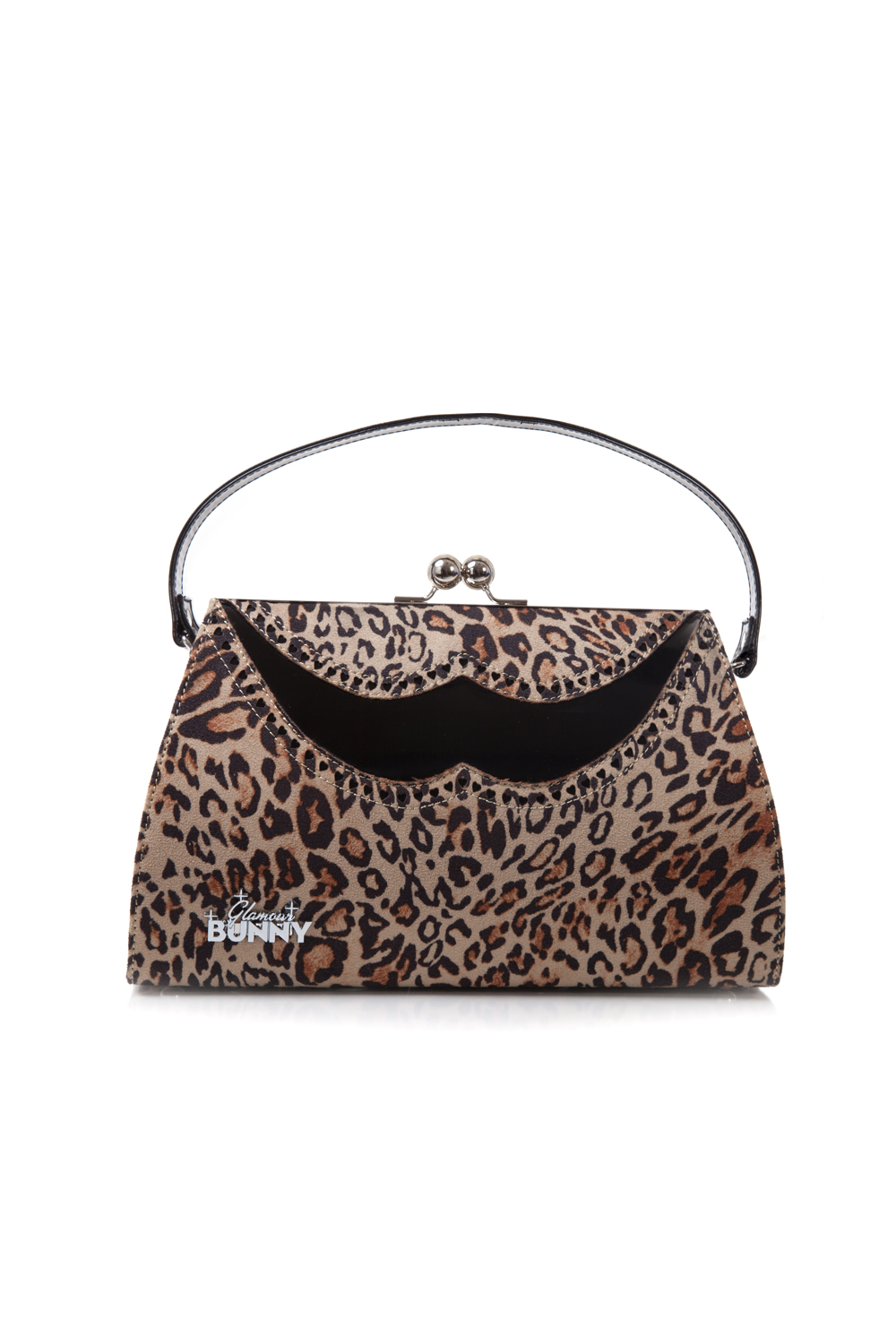 BROGUE - LEOPARD Rockabilly handbag in Black & Leopard, three internal pockets. This beautiful pinup handbag is finished to a high standard for a 50's handbag feel. Length 30cm, Height 20cm Depth 9cm