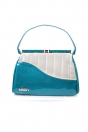 CURVE HANDBAG - TEAL Rockabilly handbag in Teal & Cream, three internal pockets. This beautiful pinup handbag is finished to a high standard for an elegant 50's handbag feel. Length 30cm, Height 20cm Depth 9cm